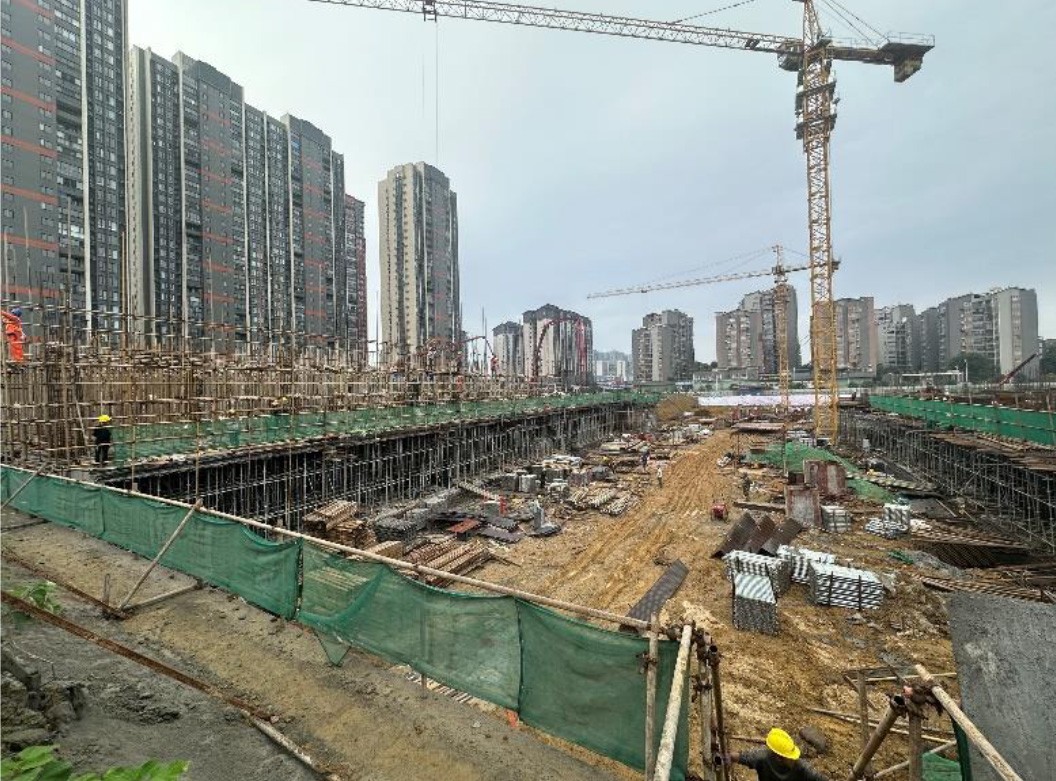 目前項目建設進度9#養老商業酒店東單元2層梁板內架搭設,西單元地下室頂 板混凝土澆筑,確保年底前投入使用,7#高層住宅地下室頂板模板鋪設、園林展示區頂板內架搭設,確保年底前具備預售條件。